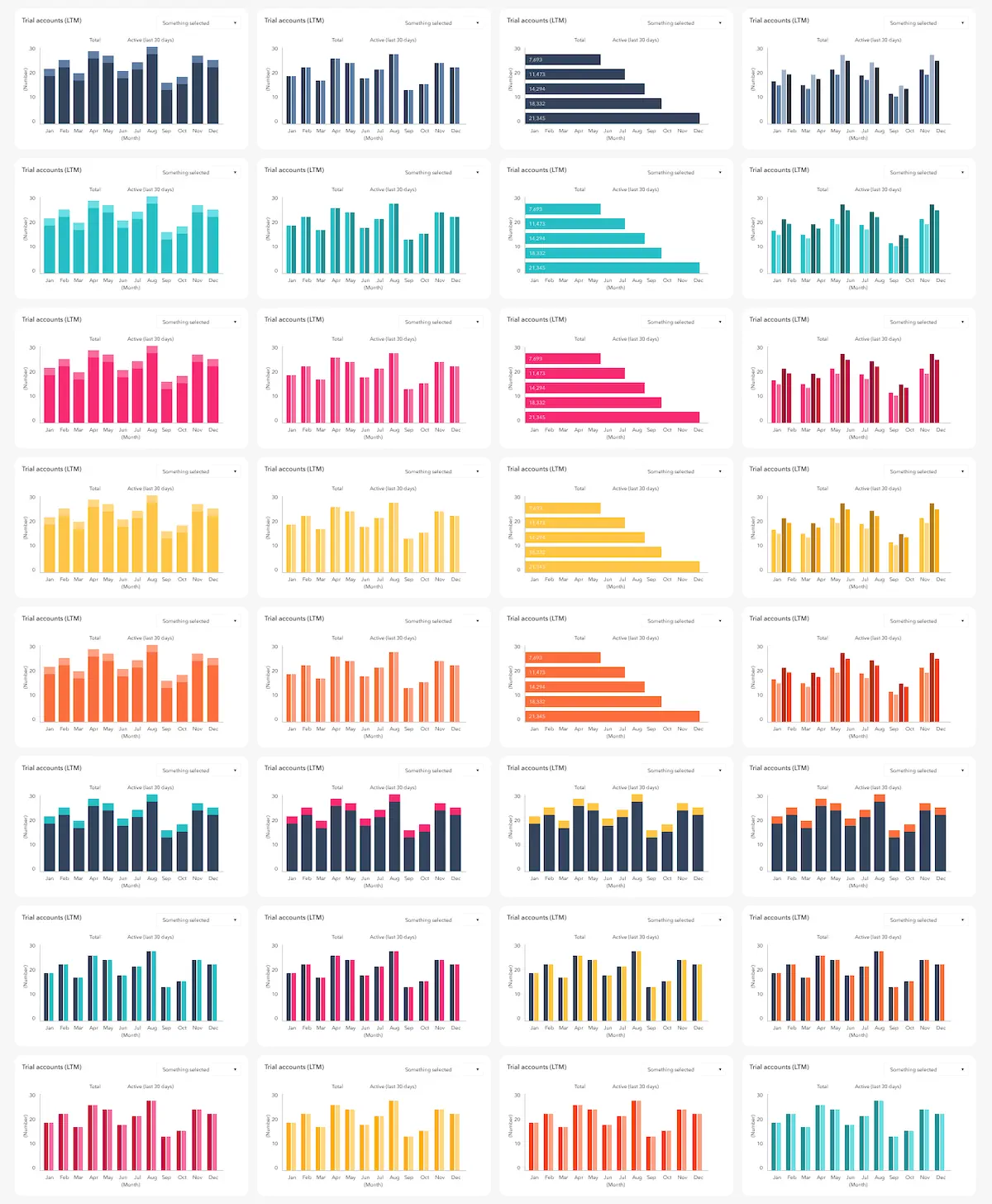 I needed a palette that was distinctive enough to feel branded, broad enough to handle the range of data categories a financial dashboard requires, and considered enough that each colour worked alongside the others without clashing or creating confusion. Getting the balance right took more iteration than most people would expect. A palette that looks simple in a brand guidelines document was the result of testing colour after colour in the context of real dashboard layouts.