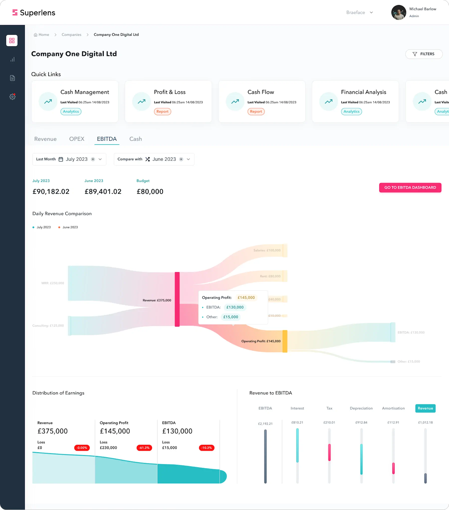 Superlens started life as a product inside flinder. A financial analytics platform that gave clients a clear window into their data through reporting dashboards. It worked well as part of the flinder offering. But things were about to change.